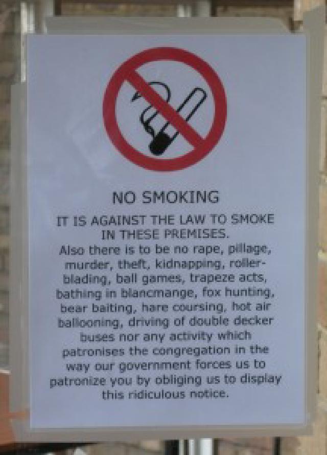 You have to give it to the man who wrote this. I still remember laughing at Eddie Izzard’s little piece on the smoking ban in California